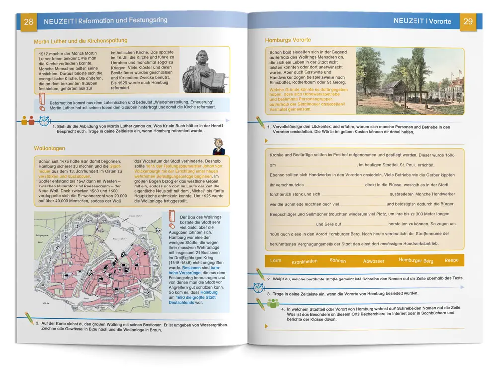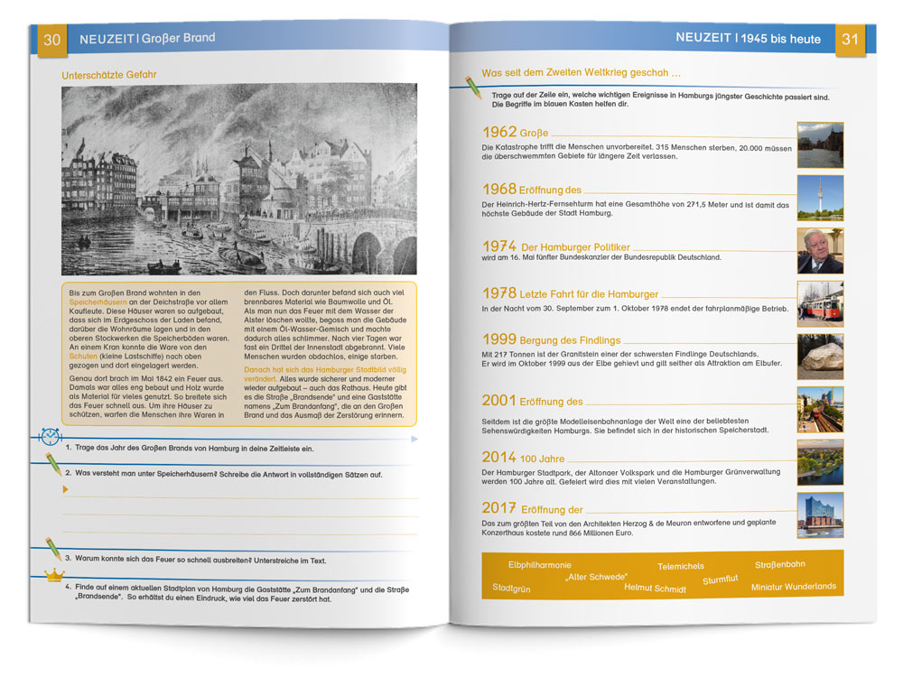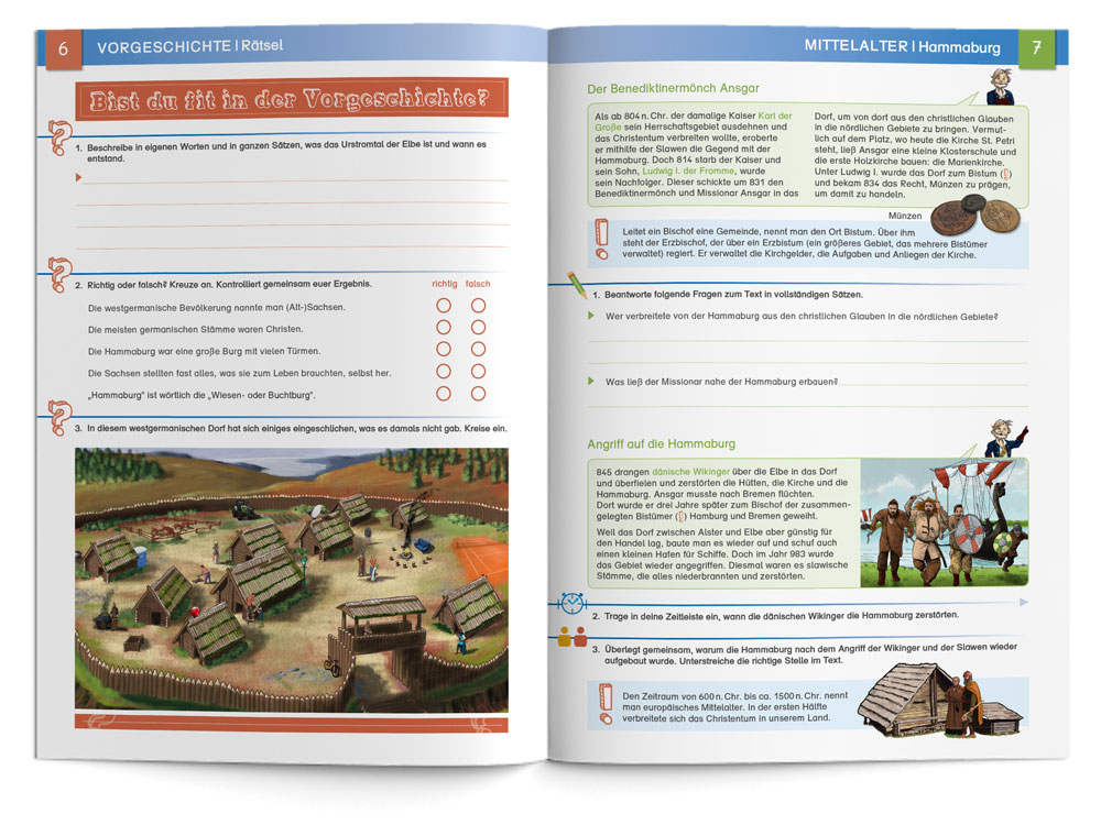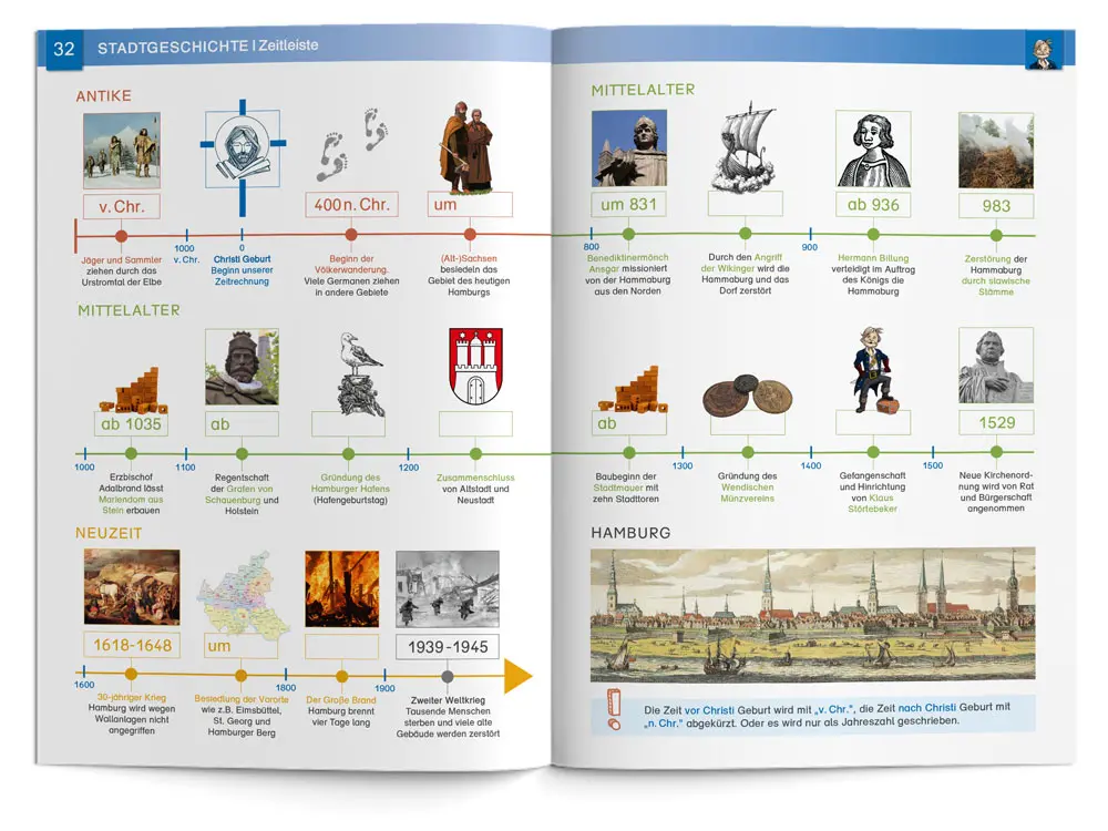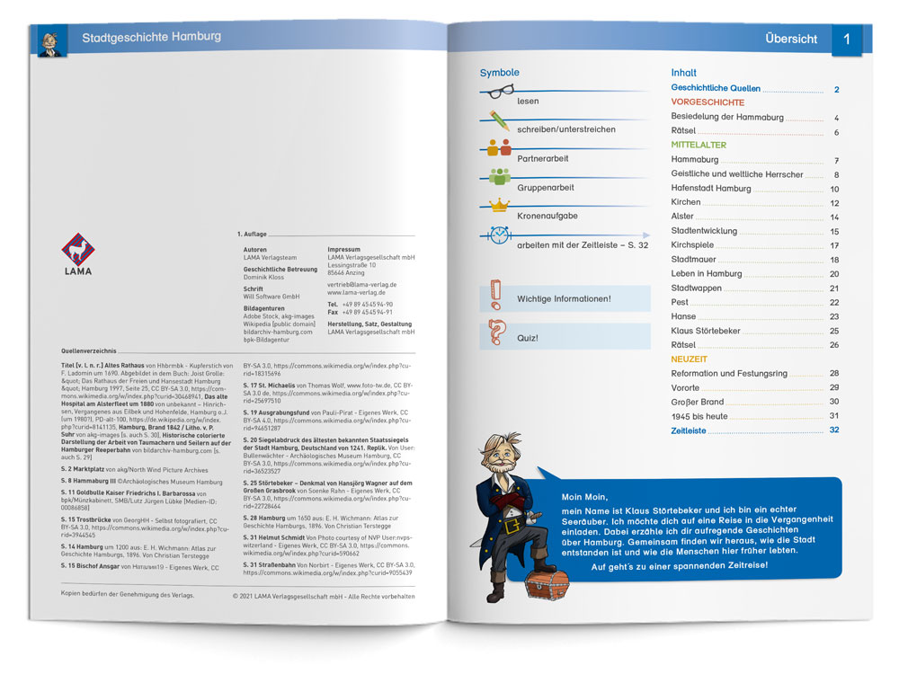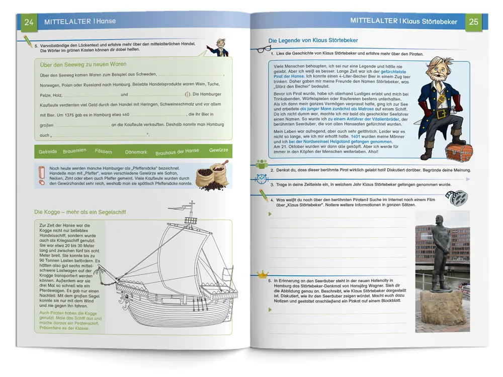 Pirat Störtebecker lädt die Schülerinnen und Schüler ein, sich mit dem spannenden Thema der Stadtgeschichte Hamburgs zu beschäftigen. In vielen aufregenden Geschichten finden die Kinder heraus, wie die Stadt entstanden ist und die Menschen hier früher lebten.