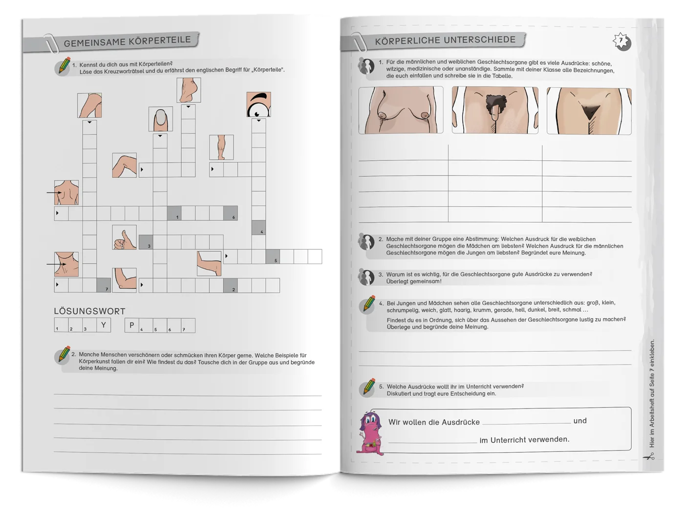 Passend zum Arbeitsheft findet man hier wertvolle Tipps für den Sexualerziehungsunterricht, Kopiervorlagen mit Differenzierungsmaterial sowie Lösungen.