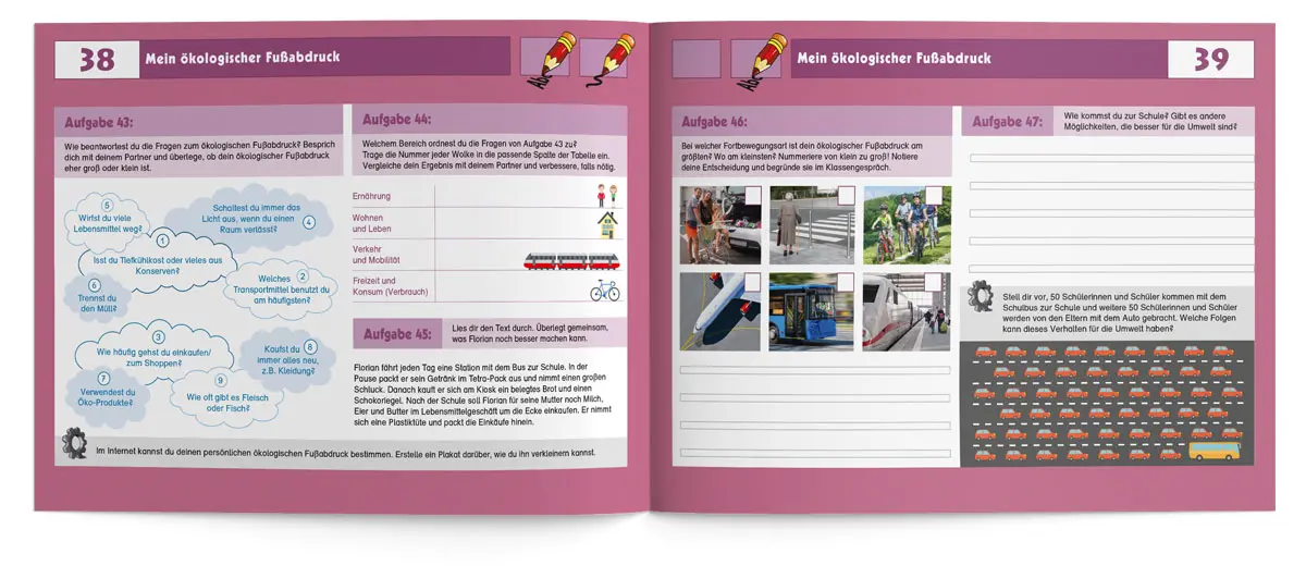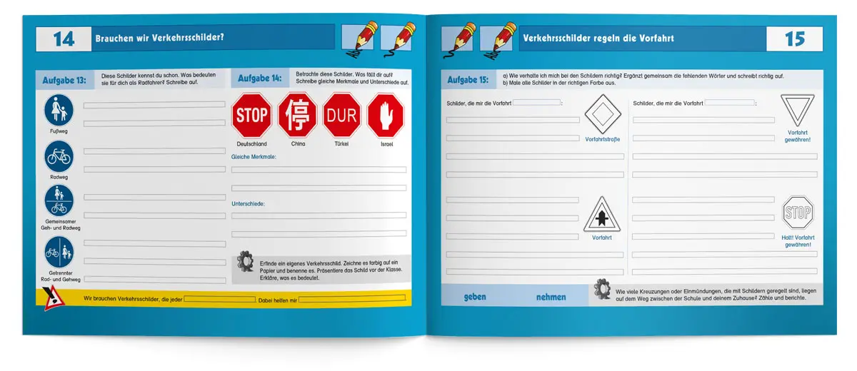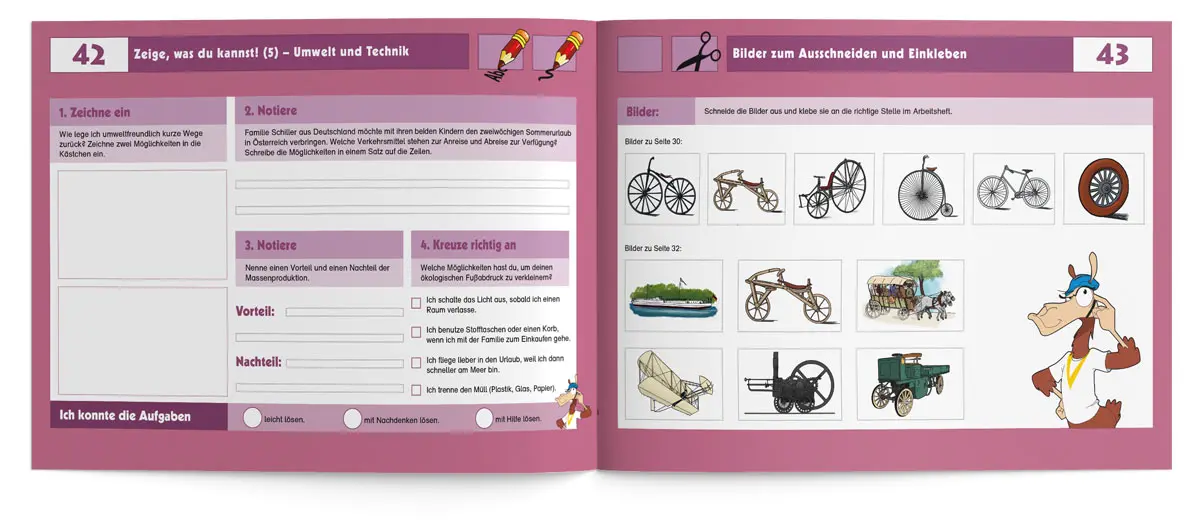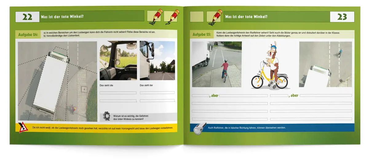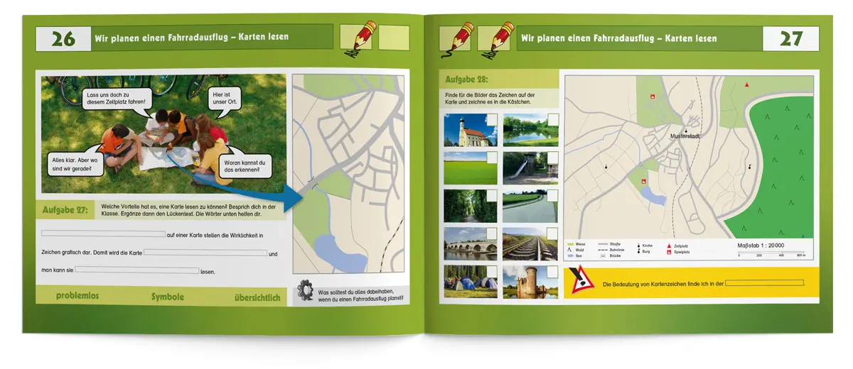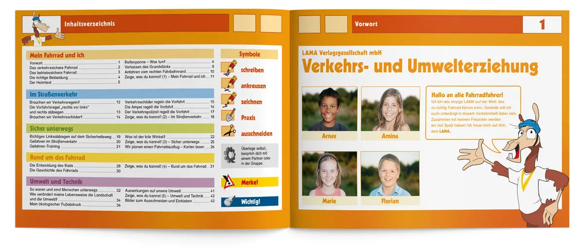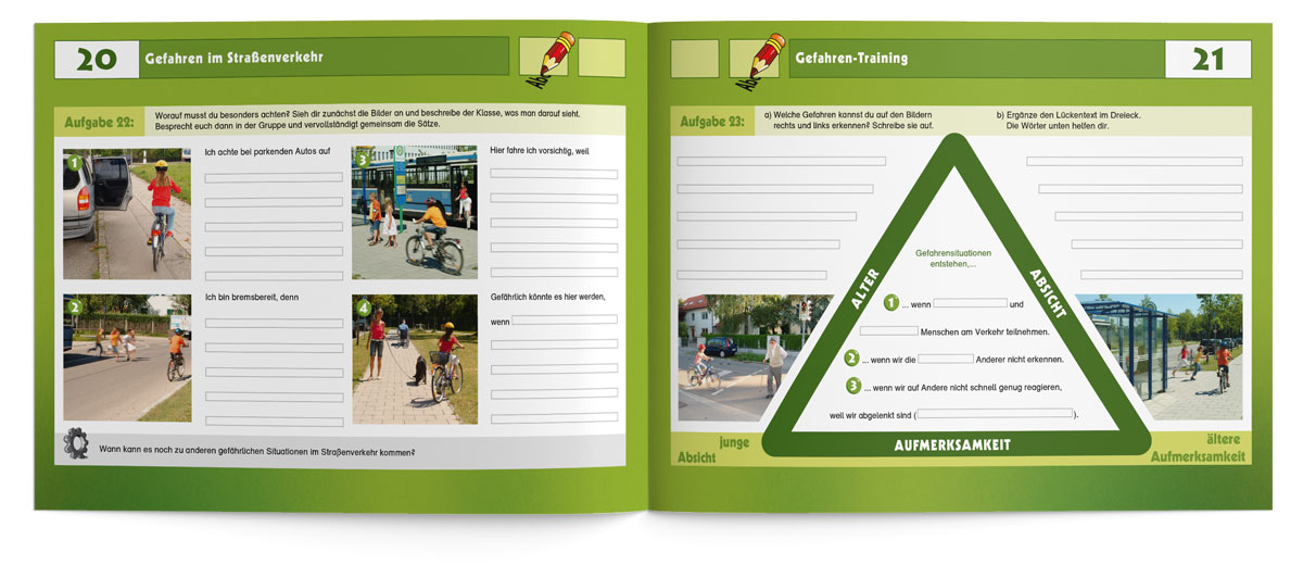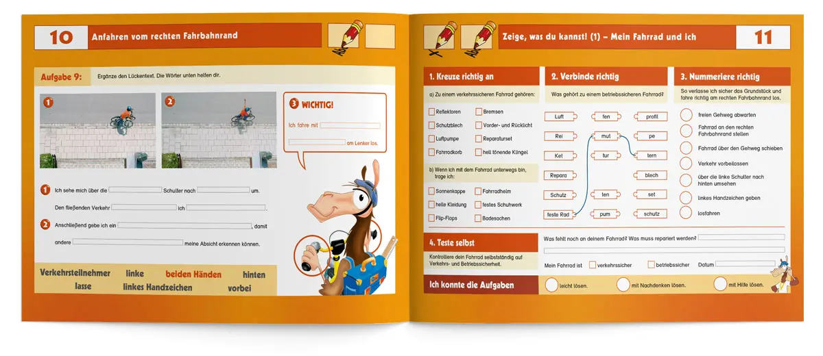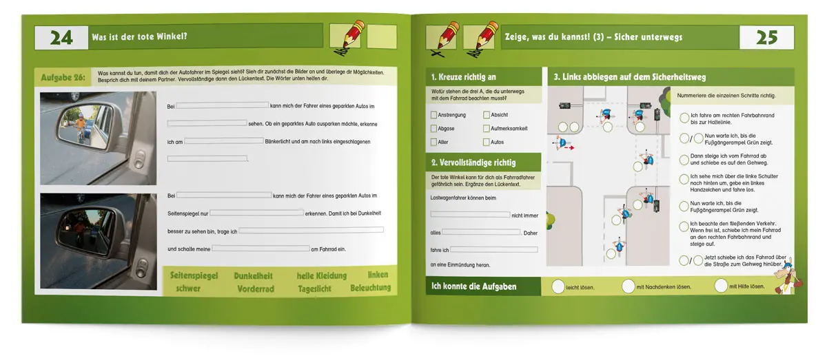 Dass Radfahren nicht nur Spaß macht, sondern auch die Umwelt schont, ist kein Geheimnis. Viele Kinder fahren bereits mit Ihren Eltern oder Freunden Fahrrad, noch bevor sie in der 4. Klasse mit der Fahrradausbildung beginnen. Mit diesem kindgerechten Übungsheft können Lehrkräfte ihre Schüler/-innen von Anfang an für die Verkehrs- und Umwelterziehung begeistern. Gemeinsam wird zum Beispiel der Unterschied zwischen einem verkehrs- und einem betriebssicheren Fahrrad geklärt, wie man eine Karte liest oder sich als Radfahrer im Straßenverkehr richtig verhält. Auch die Themenbereiche „Mobilität im Wandel“, „Mein ökologische Fußabdruck“ oder „die Geschichte des Fahrrads“ begeistern die Schüler/-innen sicherlich ebenso.