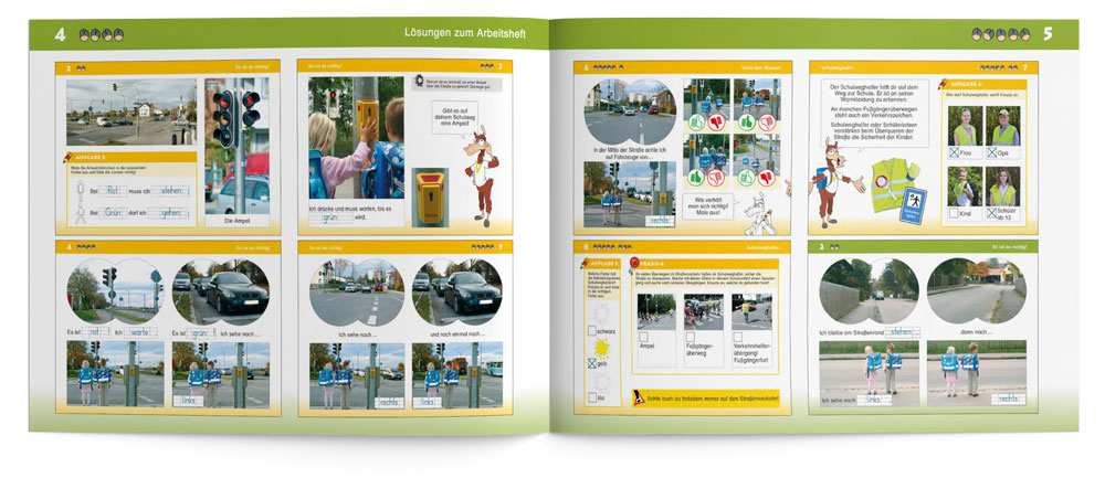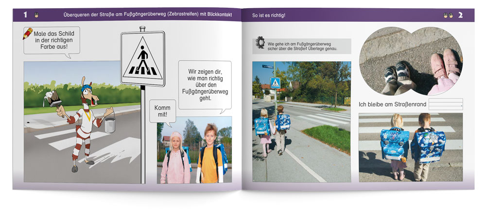 - Der Fußgängerüberweg, Sichere Überwege, Besondere Vorsicht, Der Geh- und Radweg, Mobil ans Ziel, Sicherheit und Umwelt